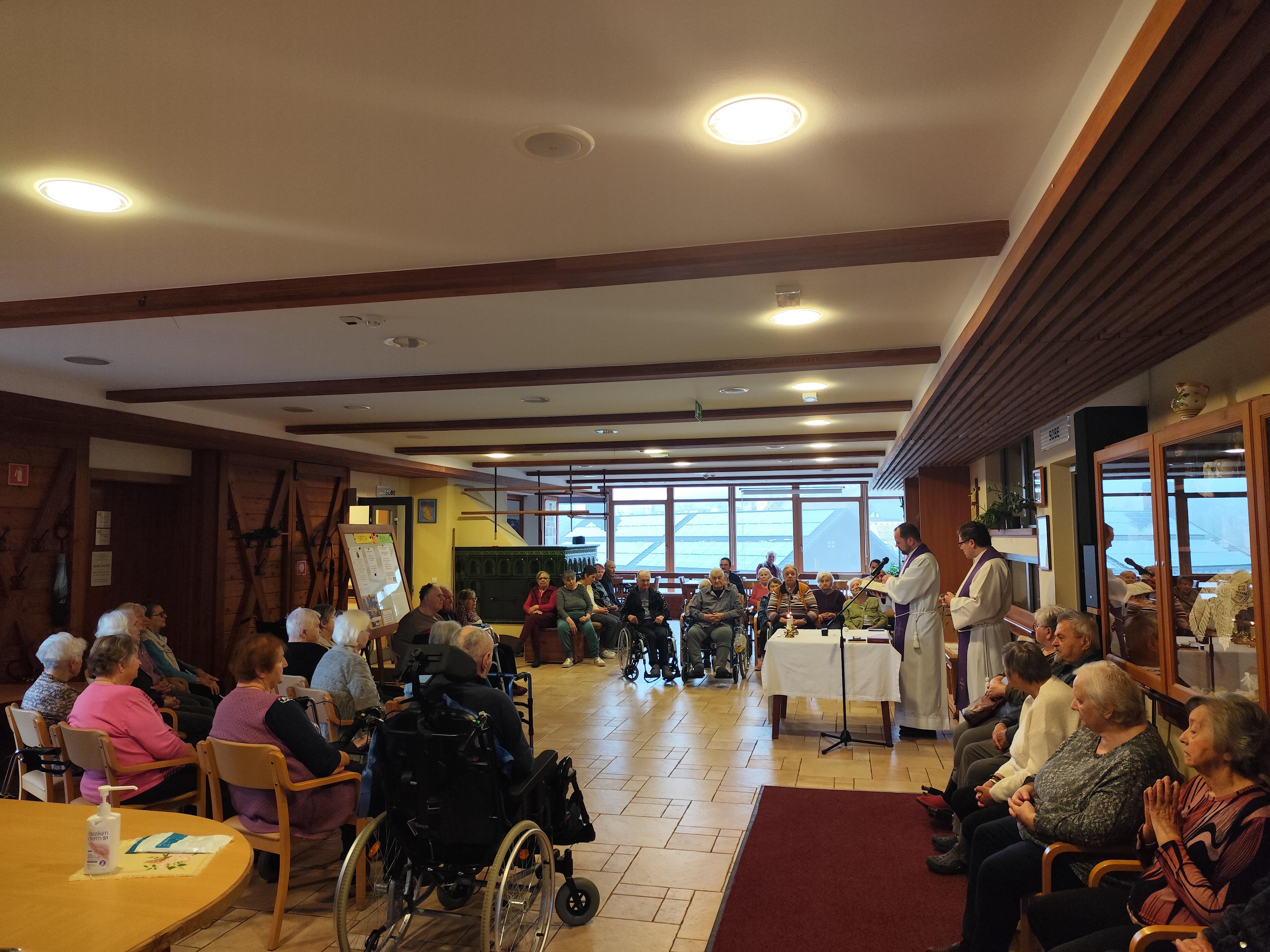 Tudi v Domu sv. Martina sta danes g. župnik Gašper Kočan ter g. župnik Janez K. Burja stanovalcem in obiskovalcem Doma podelila bolniško maziljenje.