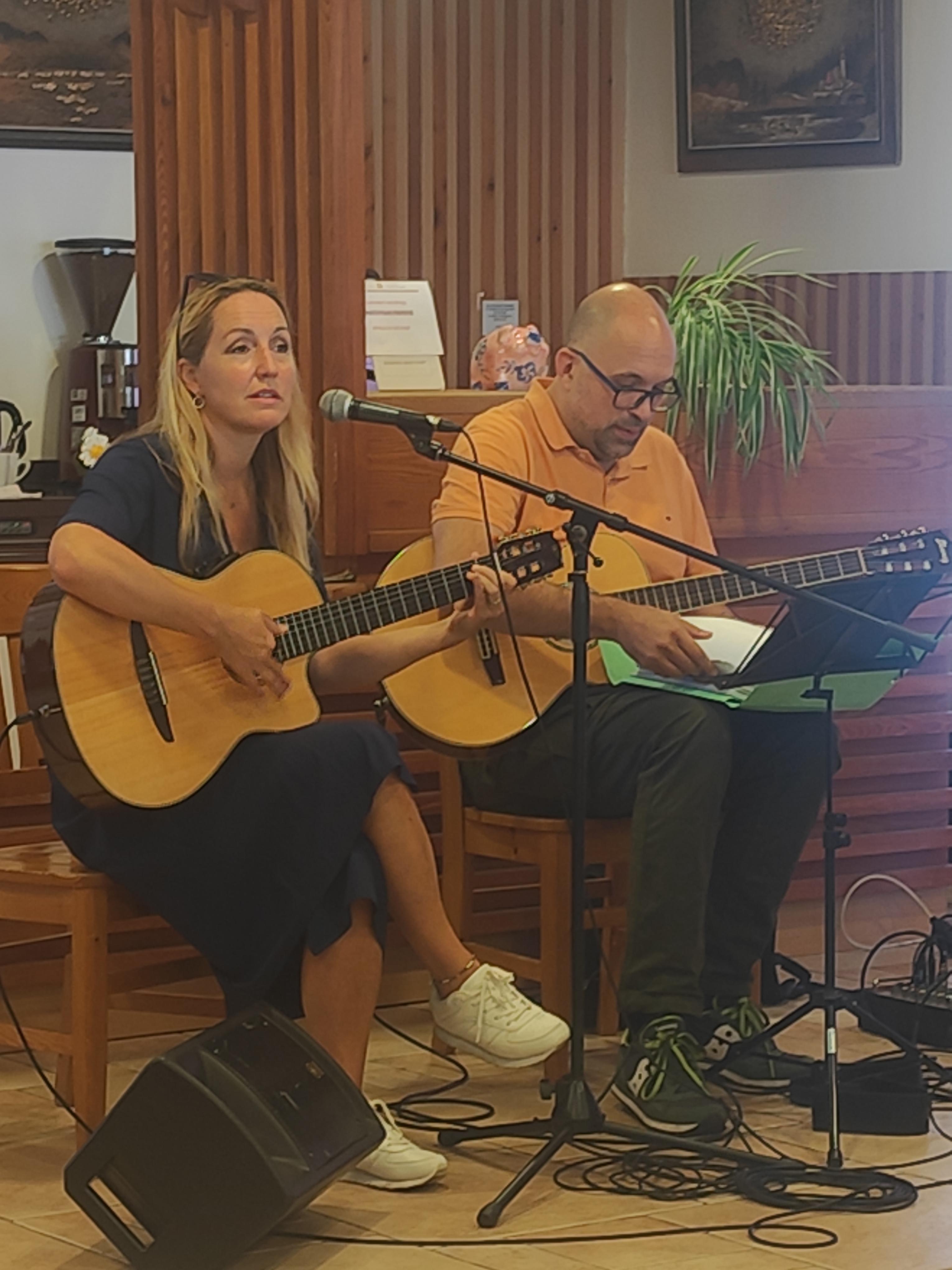 Danes, v sredo 3. 9. 2025 smo se v Domu razveselili nastopa vrhunskih glasbenikov: pevke Eve Hren in glasbenika Gorana Rukavine.