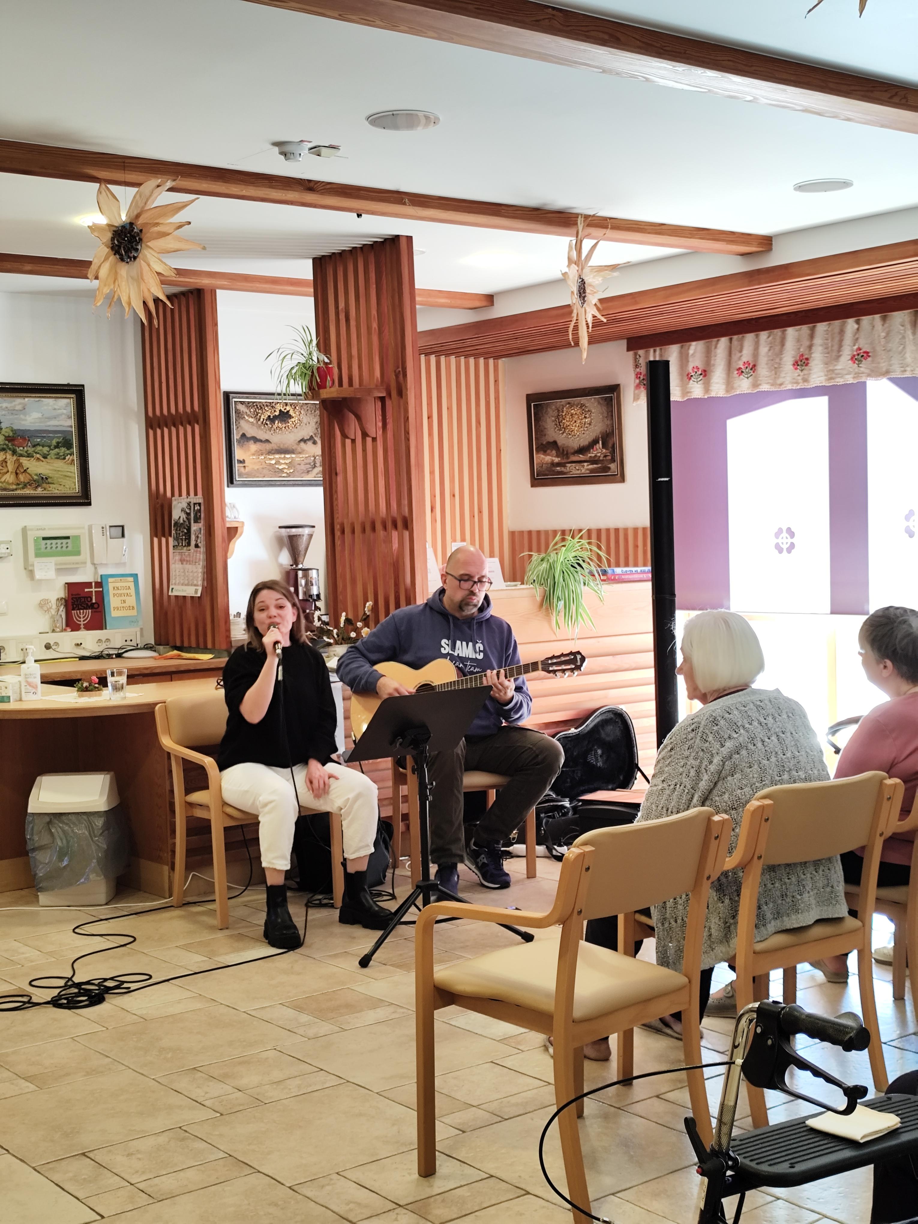 In duš stanovalcev ter zaposlenih se je danes s svojim glasom dotaknila pevka Jana Šušteršič, z glasbeno spremljavo Gorana Rukavine in pod tehnično taktirko Mojce Rukavine.
