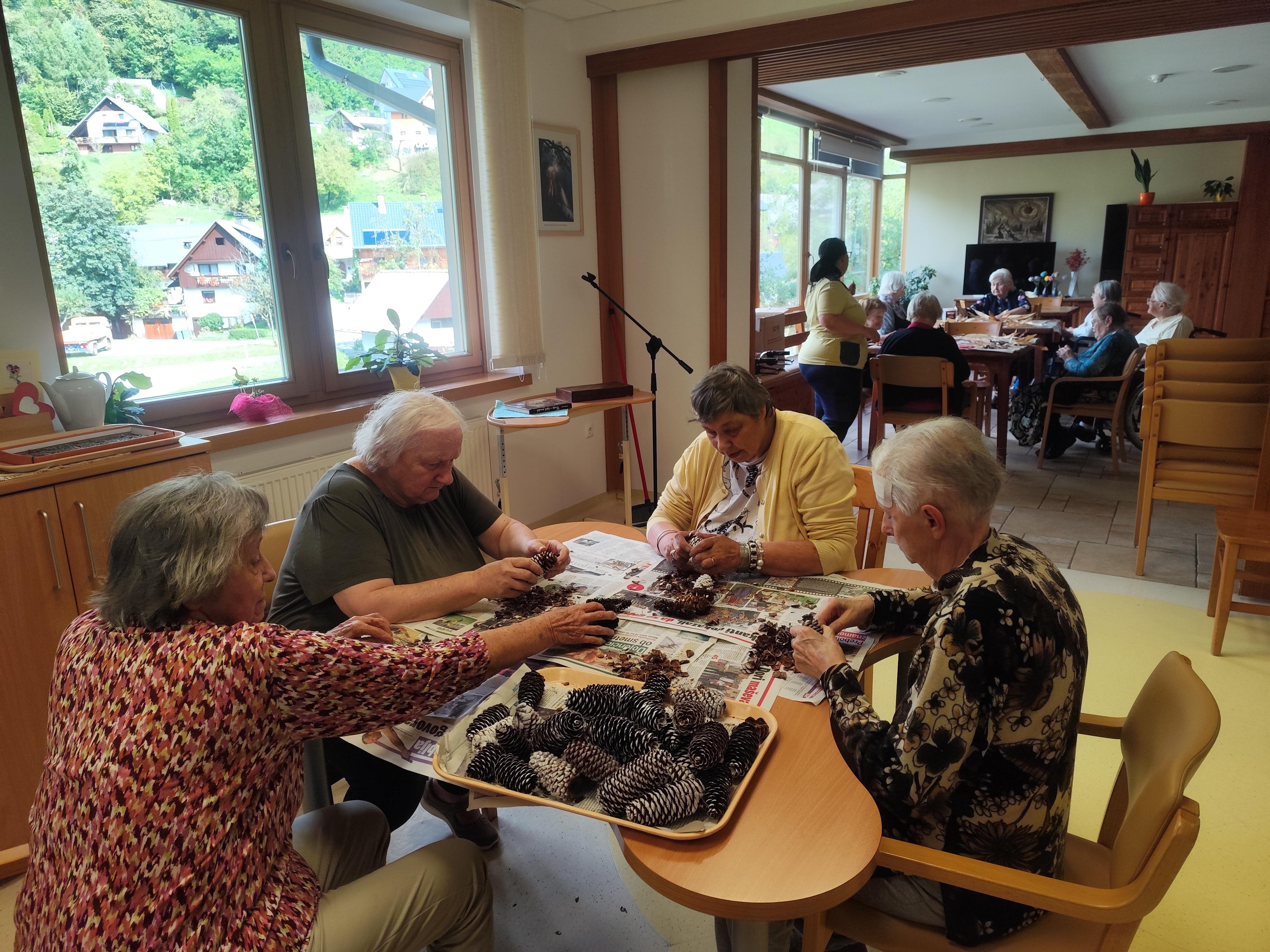 Naše stanovalke si krajšajo urice med drugim tudi z izdelavo izdelkov za okrasitev Doma. Nad delom so zelo navdušene, so hitre in natančne.